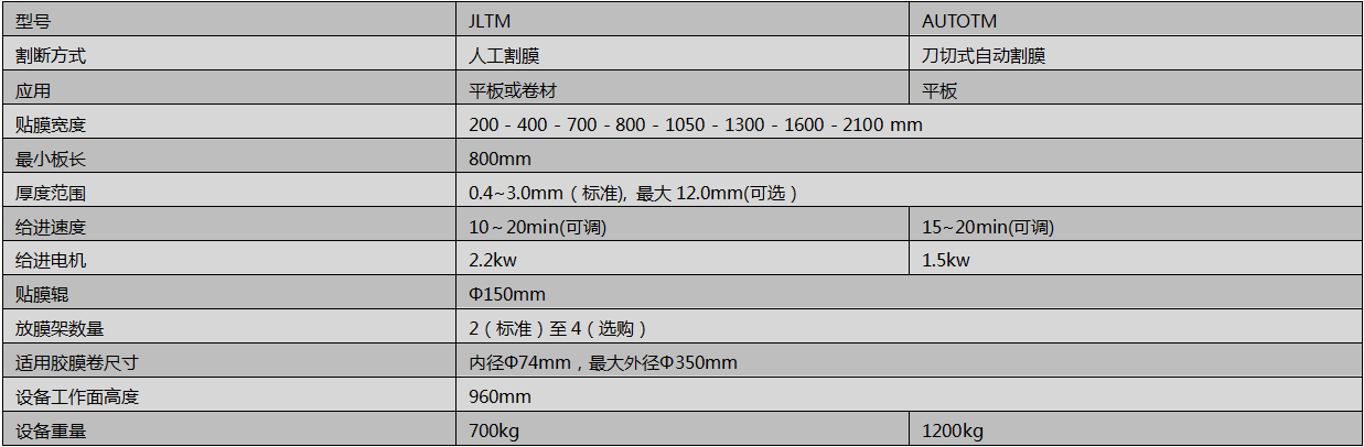 -JLTM半自動貼膜機:需手工切斷保護膜,適用于簡單的平板線或最復雜的卷材線。