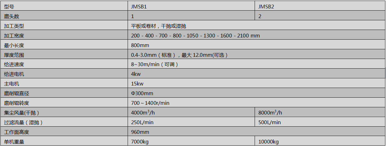 吉力佳JMSB系列其原理是利用含磨料的無紡纖維SB(Scotch-Brite)加工的拋光輥,對(duì)金屬板材表面豎向旋轉(zhuǎn)拋光的同時(shí),并做高速橫向往復(fù)擺動(dòng)的拋光作業(yè)。主要工藝特點(diǎn)是降低磨砂或直紋加工后的板面粗糙度,使其表面觸感更細(xì)膩,從而獲得SB(Scotch-Brite)表面,提高磨砂板的抗污染性。